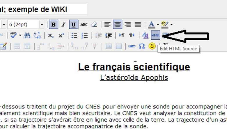 - Cliquez sur le bouton ‘HTML’ dans la version éditable de votre Wiki.