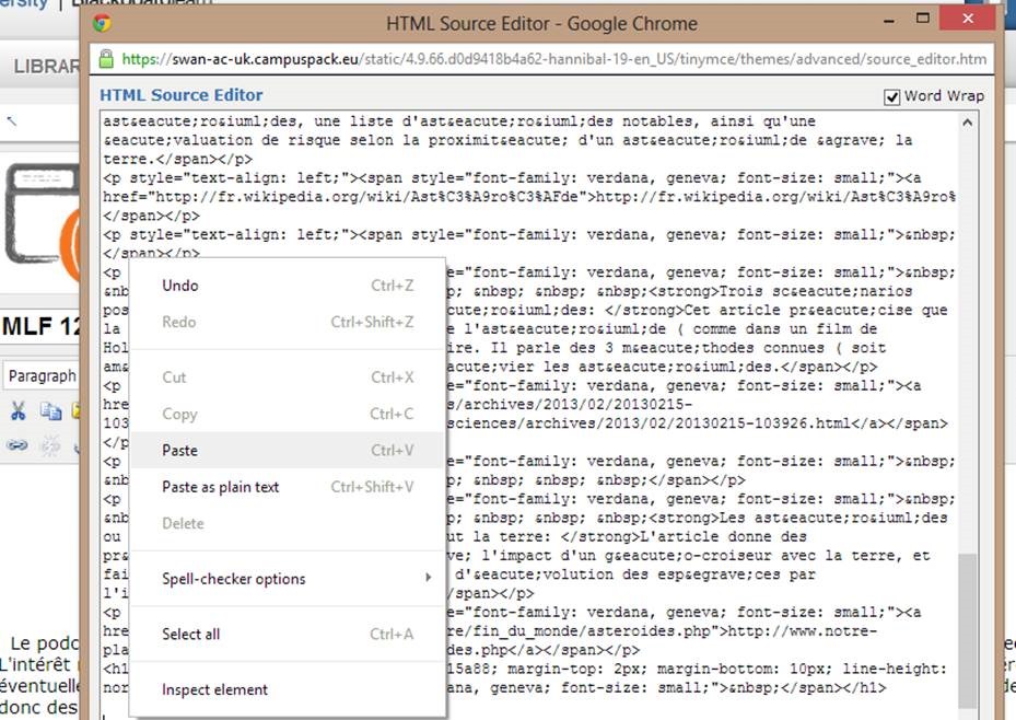 - Insérez-le à l’endroit voulu dans la fenêtre HTML de votre wiki :