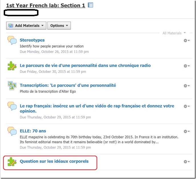 1. Connectez-vous à Schoology et allez au cours de MLF121. Cliquez sur l’activité de compréhension ‘Questions sur les idéaux corporels’