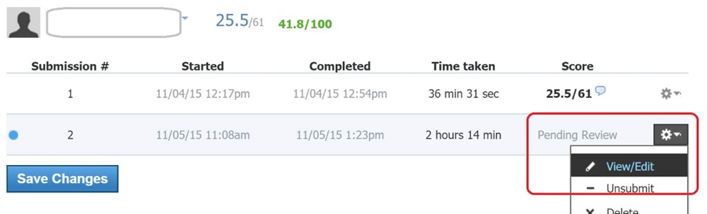 b) Lorsque vous voyez ‘Pending review’ à côté du nom d’un étudiant, cliquez ‘View attempts’.