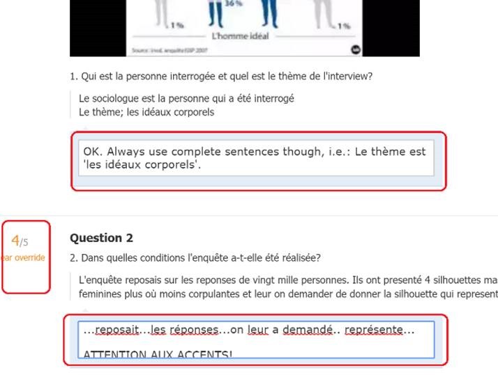 b) Mettez une note selon les critères établis dans le document ‘Clear copy of Listening Comprehension’